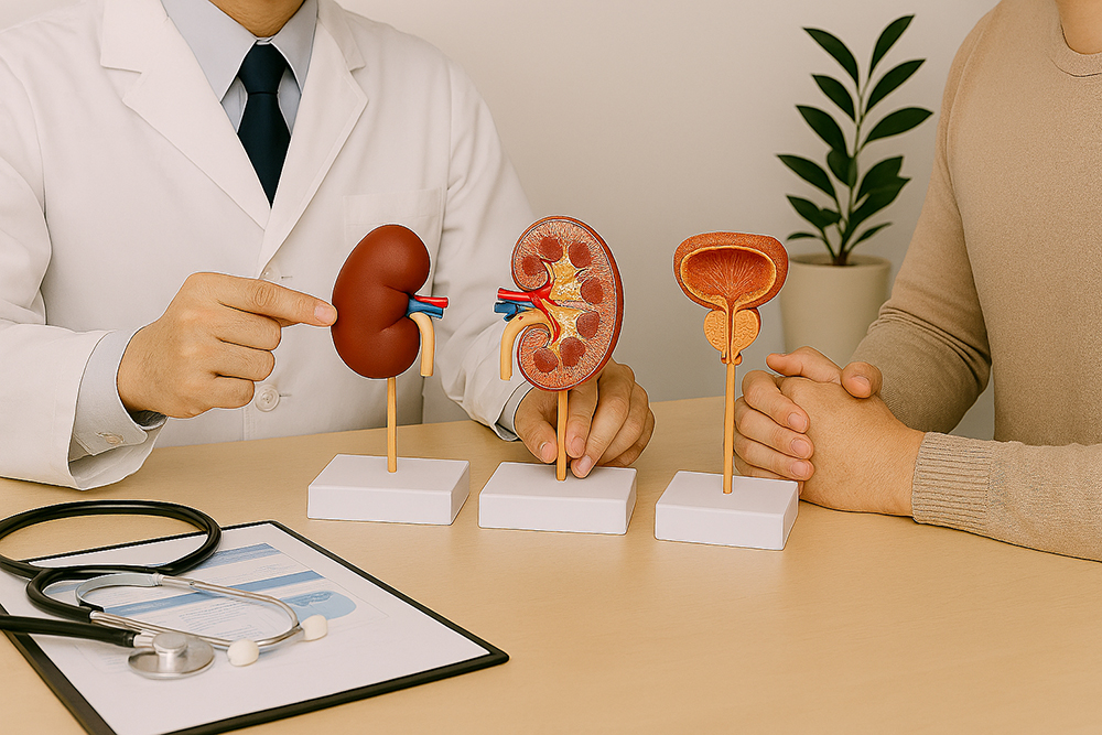 泌尿器科が扱う病気は非常に広範囲にわたります。急な排尿時痛や血尿を引き起こす膀胱炎、腎盂炎、尿道炎などの尿路感染症、激痛を伴う尿路結石、前立腺がん、膀胱がんといった悪性腫瘍、生活の支障をきたす頻尿、尿失禁、排尿困難などの排尿障害など幅広く対応しています。